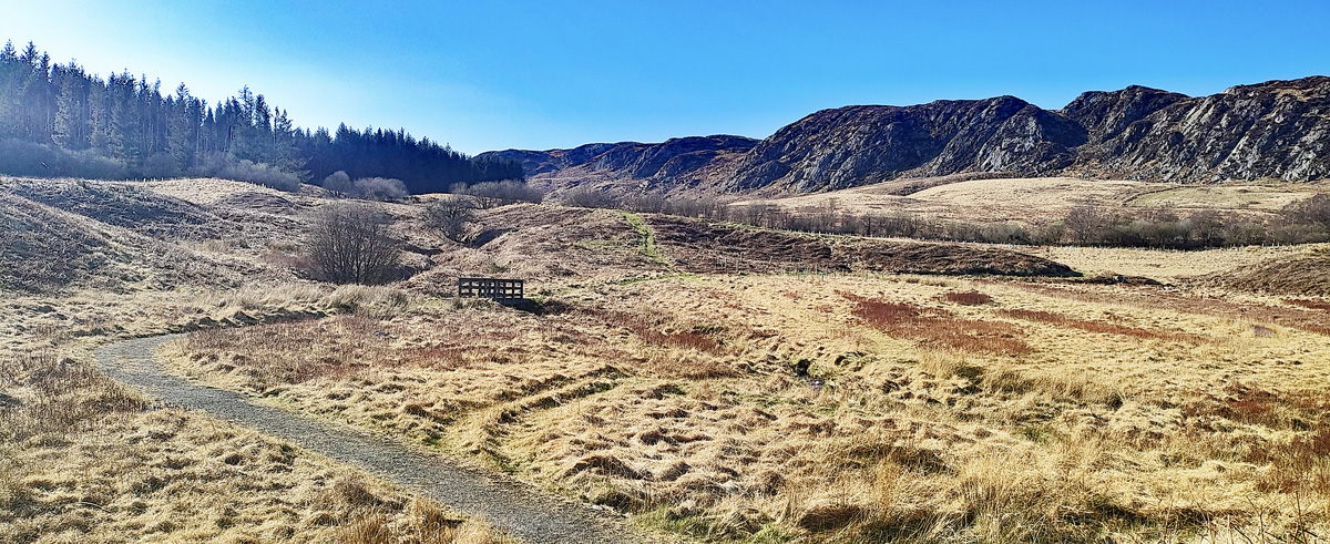 The walk is signposted as the ‘Mountain End Trail’ and is about 4 miles in total. HERE is a link to it on WalkHighlands.